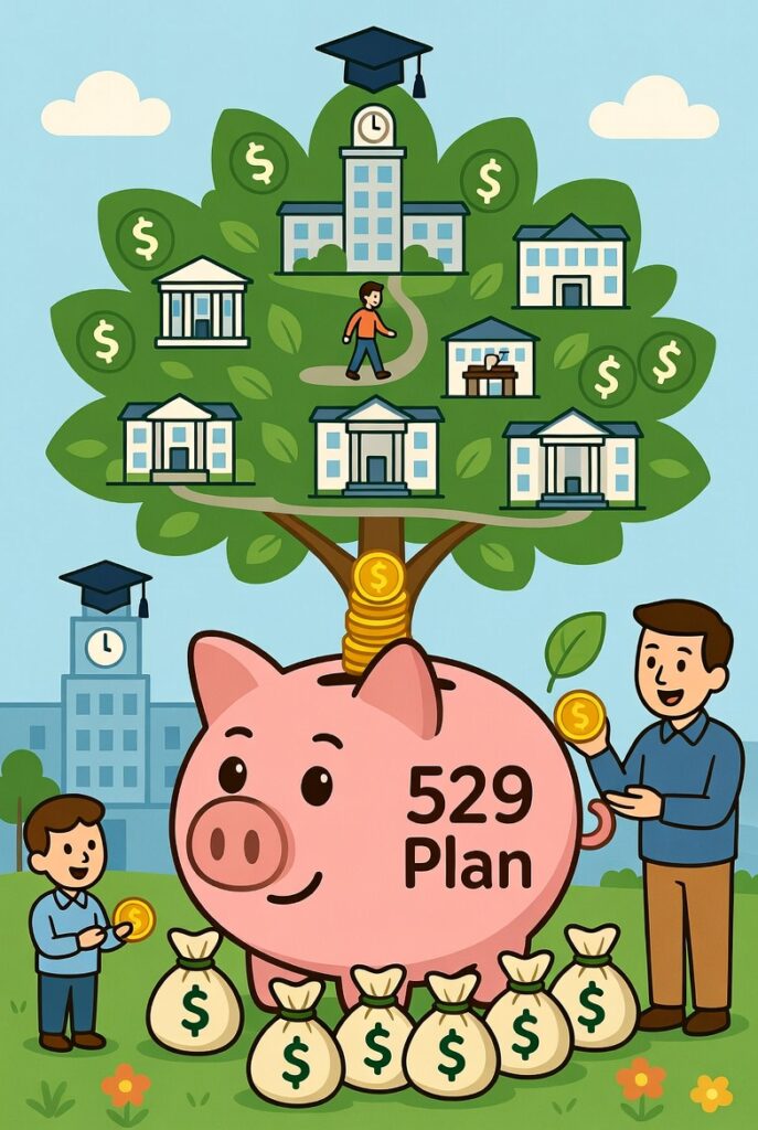 • Savings plans – Special accounts where your money grows without taxes, and you can pull it out tax-free for school stuff.